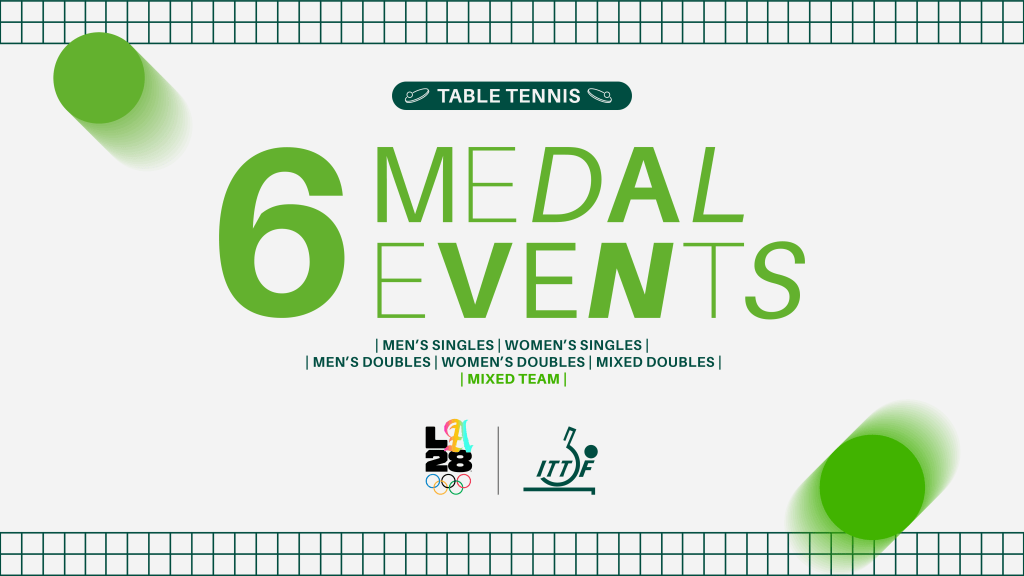 The International Table Tennis Federation (ITTF) warmly welcomes the decision by the International Olympic Committee (IOC) Executive Board to introduce a groundbreaking Mixed Team event for table tennis at the Los Angeles 2028 Olympic Games. This historic development significantly enhances the Olympic table tennis programme, which will now feature Men’s and Women’s Singles, the return of Men’s and Women’s Doubles, Mixed Doubles, and, for the first time ever at the Olympic Games, the Mixed Team event.