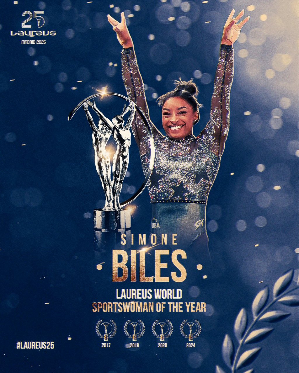 Biles previously won the Laureus World Sportswoman of the Year award in 2017, 2019 and 2020: “I won this Award for the first time in 2017 and Laureus has been a part of my story since then, and I share their belief that sport has the power to change the world,” the seven-time Olympic champion said.