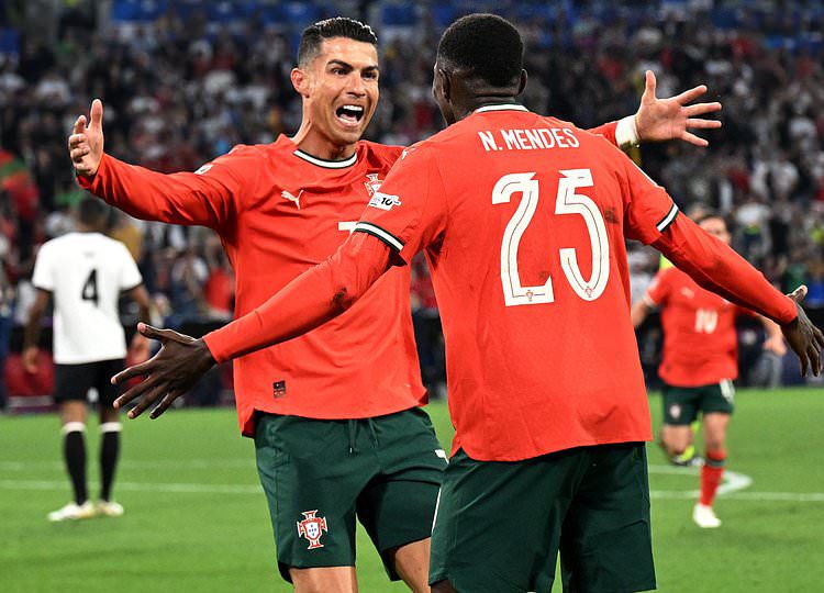 F. Conceiçào whose father scored a hattrick the last time Portugal beat Germany drew blood for Portugal before Nuno Mendes sent in a cross that was connected by Cristiano Ronaldo to give Portugal the lead.